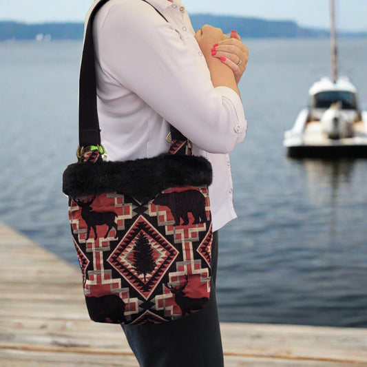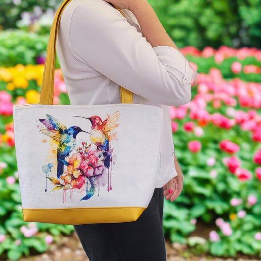 Leather and Linen Hummingbird Summer Shoulder Bag